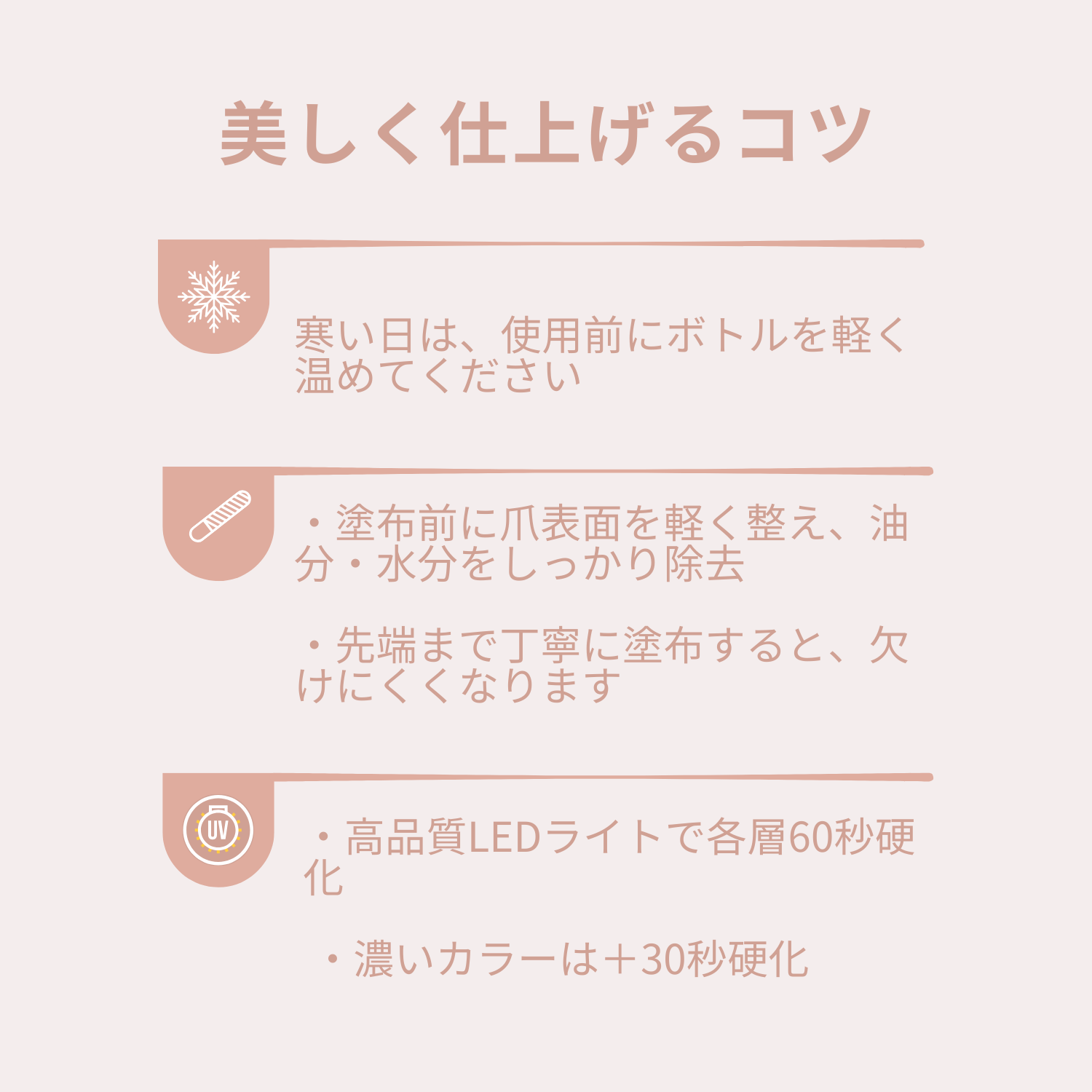 塗布後にUVライトで硬化するだけで、鮮やかな発色と美しいツヤを実現し、自宅でもサロンのような仕上がりを楽しめます。