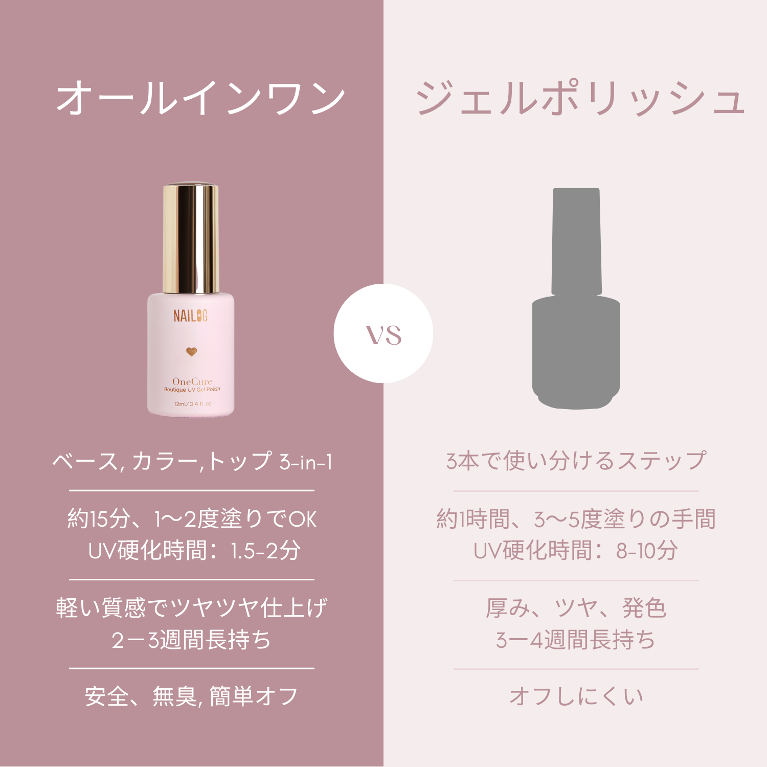 NAILOGオールインワンジェルネイルは、ベース・カラー・トップを1本にまとめたジェルネイル。